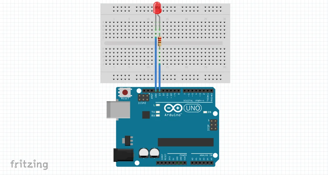 Basicamente, o código faz o led piscar a cada segundo. Na função void setup, é definido para qual saída iremos mandar o sinal, nesse caso, seria a saída 13. Já no void loop, definimos o que o código irá fazer, e nesse caso, o programa acende o led na porta definida anteriormente, espera 1 segundo (1000 milisegundos), apaga o led e espera 1 segundo novamente. Isso se repete até o programa ser parado.